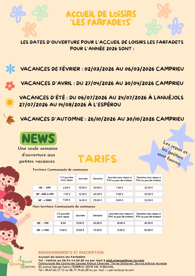 Accueil de loisir LES FARFADETS du 27/04/2026 au 30/10/2026